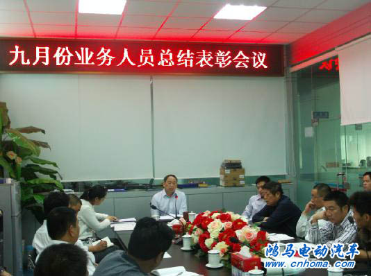 10月5日,我公司9月份業(yè)務員總結表彰會在鴻馬電動汽車研發(fā)中心3樓會議室召開,總經(jīng)理馬鴻軍,相關領導等40多人參加會議。