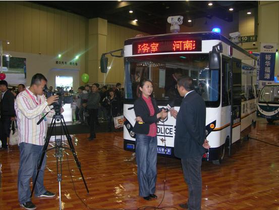 在車展的進(jìn)行中,有不少媒體對(duì)車展進(jìn)行了全方位跟蹤報(bào)道,其中河南電視臺(tái)對(duì)鴻馬電動(dòng)汽車參展的新能源車輛--鴻馬流動(dòng)警務(wù)室進(jìn)行了詳細(xì)的報(bào)道,采訪了鴻馬電動(dòng)汽車銷售3部經(jīng)理李自軍。