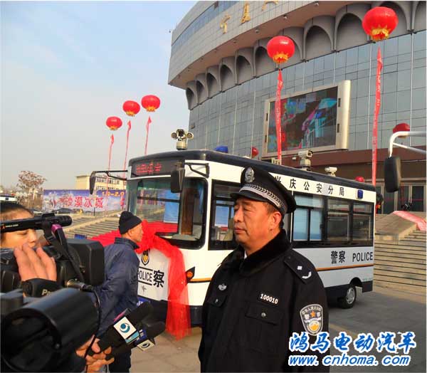 新聞媒體采訪興慶公安局長拍攝鴻馬流動警務(wù)室