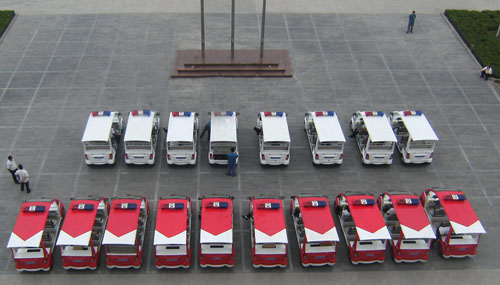前不久,河南省政府下達(dá)指令,河南各縣、市、社區(qū)等必須配備警用巡邏車,加強(qiáng)我省的安全防衛(wèi)工作,目前,河南森源鴻馬電動(dòng)汽車已經(jīng)以其優(yōu)質(zhì)的服務(wù)、過硬的質(zhì)量、先進(jìn)的技術(shù)贏取了各大防衛(wèi)科的眼球,現(xiàn)已經(jīng)在駐馬店平輿公安局、鄭州二里崗辦事處、鄭州建業(yè)路派出所、安陽公安局特警大隊(duì)、周口地區(qū)公安系統(tǒng)、三門峽公安系統(tǒng)、濮陽公安系統(tǒng) 、平頂山公安系統(tǒng) 、漯河公安系統(tǒng)、鄭東新區(qū)公安局 、深圳市公安局、深圳市戒毒所 、南陽市公安局、濟(jì)源市公安局、三門峽公安局、石家莊開發(fā)區(qū)執(zhí)法局、鞏義永安路街道辦事處、禹州市三看守所等公安系統(tǒng)。