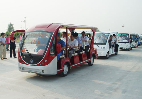 省領(lǐng)導(dǎo)在試坐電動觀光車