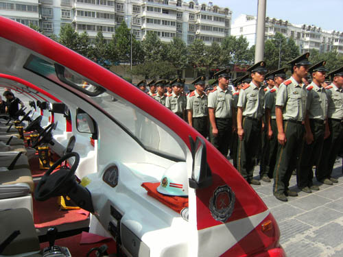 昨天下午3時許,在鄭州市長江路與大學(xué)路交叉口附近,12輛嶄新消防巡邏車列隊路邊(上圖),等候接車的巡防隊員們一臉喜悅,片刻之后,河南森源鴻馬12輛耀眼的紅色電動消防巡邏車緩緩駛近,將這12輛電動消防巡邏車的鑰匙,移交給了二七區(qū)辦事處的相關(guān)負(fù)責(zé)人。據(jù)二七區(qū)相關(guān)領(lǐng)導(dǎo)介紹,撥?钯徺I的消防電動巡邏車,每輛車配備一臺背負(fù)式細(xì)水霧滅火裝置,4個8公斤干粉滅火器,并配有消防扳手、消防斧、消防戰(zhàn)斗服、消防膠靴、防煙面具等裝備。巡防隊員駕駛著它們,可以第一時間趕至現(xiàn)場遏制火勢蔓延,還可以在背街小巷等消防車難以通達(dá)的地方大派用場。