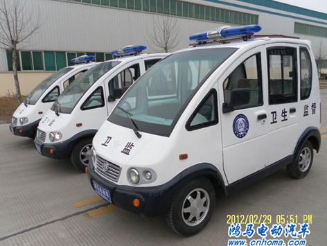 2012年2月29日,三臺周口電動衛(wèi)監(jiān)車一字排開,在鴻馬電動汽車長葛生產(chǎn)基地舉行發(fā)車儀式,這三臺鄲城電動衛(wèi)監(jiān)車即將服務(wù)于周口市鄲城衛(wèi)生監(jiān)督局。