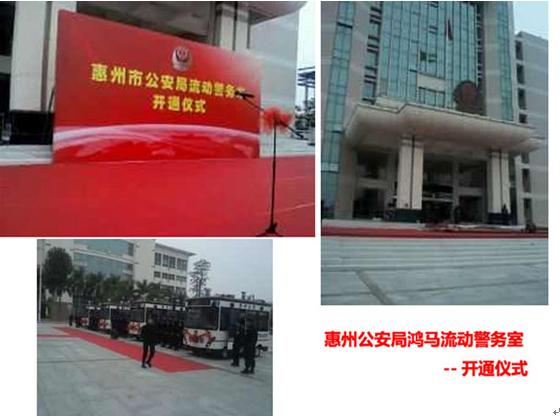 2012年3月5日,四臺白色車身,藏青色標線的鴻馬流動警務室落戶廣東惠州,它們的到來給廣東惠州市民帶來了福音,惠州市公安局相關領導參加了此次鴻馬流動警務室開通儀式。