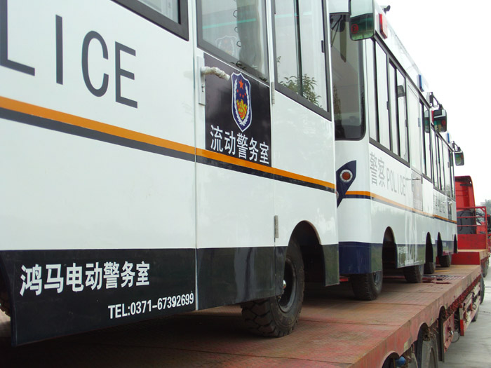 2010年9月29日下午3時,河南森源鴻馬電動汽車有限公司經(jīng)過了幾天的忙碌,終于把專為西安公安局長安分局開發(fā)研制的電動流動警務(wù)室裝上了西去的貨車,明早即將抵達西安,舉行發(fā)車儀式,為祖國的第六十一個生日獻上一份賀禮,為長安市人民的生命財產(chǎn)安全提供了更加有力的保障。