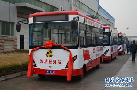 此次發(fā)往鄭州的三臺(tái)流動(dòng)黨員服務(wù)站,是根據(jù)管城回族區(qū)領(lǐng)導(dǎo)的要求,經(jīng)過(guò)鴻馬電動(dòng)汽車公司技術(shù)部門的精心設(shè)計(jì)而成,車身顏色紅白相間,四周有黨旗圖案,側(cè)身顯示有“為黨旗增輝,讓人民滿意”的標(biāo)語(yǔ)。