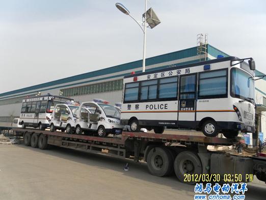 2012年3月30日下午,繼甘肅省金昌市和嘉峪關(guān)市公安局采購(gòu)之后,在河南森源鴻馬電動(dòng)汽車公司長(zhǎng)葛生產(chǎn)基地舉行甘肅省定西市公安局警務(wù)室流動(dòng)發(fā)車儀式。 此次發(fā)往甘肅省定西市公安局的是2臺(tái)5.5米流動(dòng)警務(wù)室,是河南森源鴻馬電動(dòng)汽車公司的特色產(chǎn)品。
