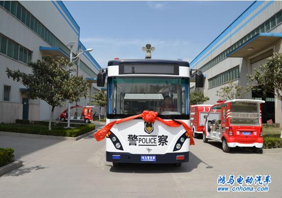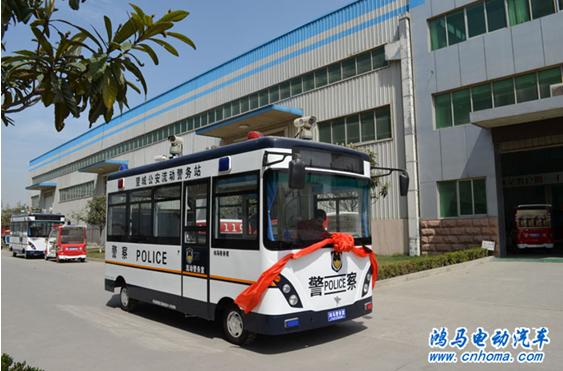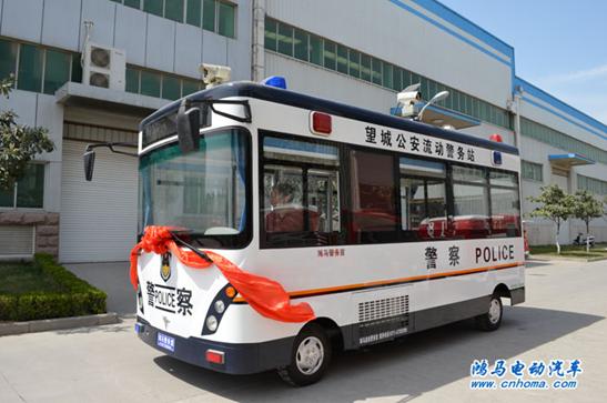 2012年4月4日下午,在河南森源鴻馬電動汽車公司舉行長沙望城區(qū)公安局流動警務站發(fā)車儀式。